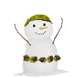 - Handmade snowman with moss hat and pine cone belt (Winter Island 2025) ✘