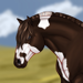 Een KWPN'er met een schorpioen sterrenbeeld dekje en peesbeschermers op online browsergame MyHorsez